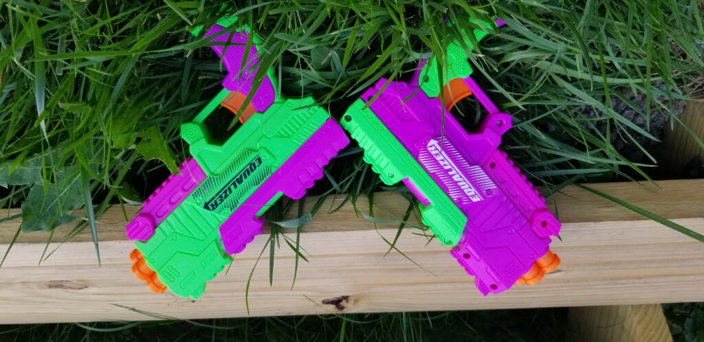 Buzz Bee has quite a few blasters appearing at Walmart this fall. As always, Buzz Bee is doing a great job with the sidearms, and the Adventure Force Equalizer is no exception. This year’s replacement for the Wizard/Clash Combat, it aims for a thinner blaster for the same performance and price (two blasters for $10), and succeeds. If you need blasters to holster, or spares to loan at stock wars, this set will equalize the playing field.