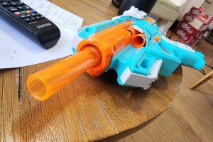 The Delta Pro continues the trend of pro blasters with bright colors, and I’m all for it. The bright blue motif will make this a great option for the games I occasionally do in public parks, for one.